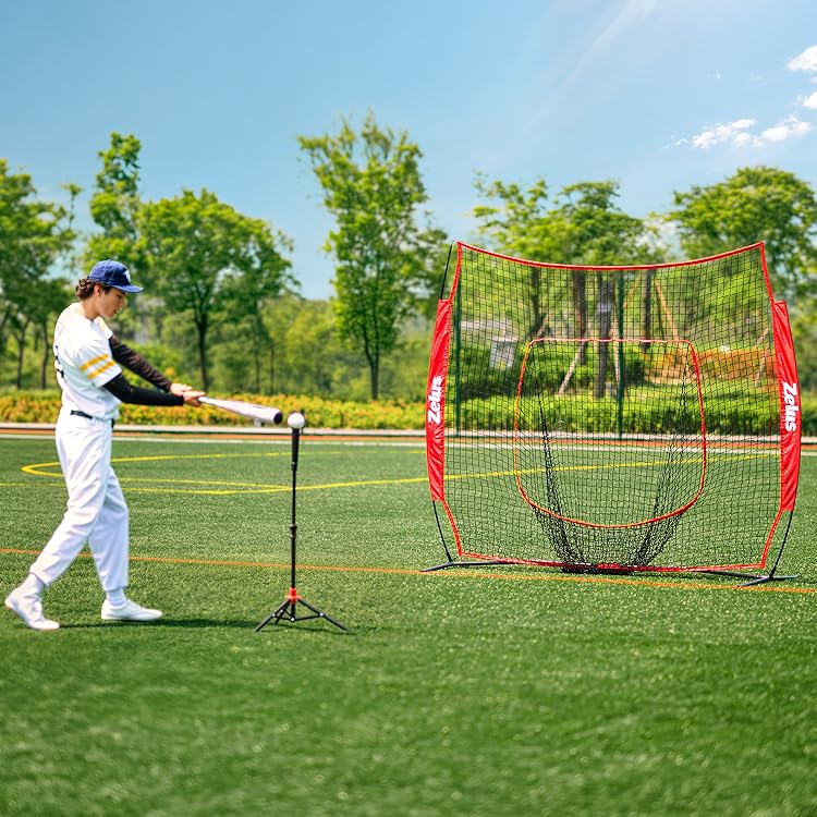 ZELUS 9-Hole Pitching Net Plus, Baseball Net with Authentic Strike Zone for Outdoor & Indoor Use, Height Adjustable Baseball Training Net for Batting Pitching Hitting, Softball Aid Equipment