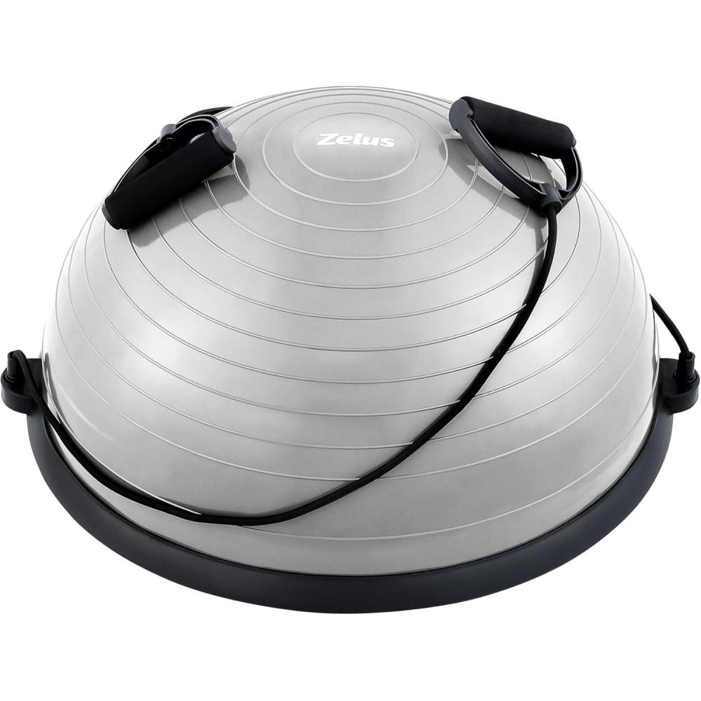 ZELUS Balance Ball Trainer with Resistance Bands and Foot Pump, Inflatable Yoga Ball for Home Gym Workouts, 23 Inch Exercise Half Ball for Balance Training Core Strength Fitness More, 330lb Cap(Grey)