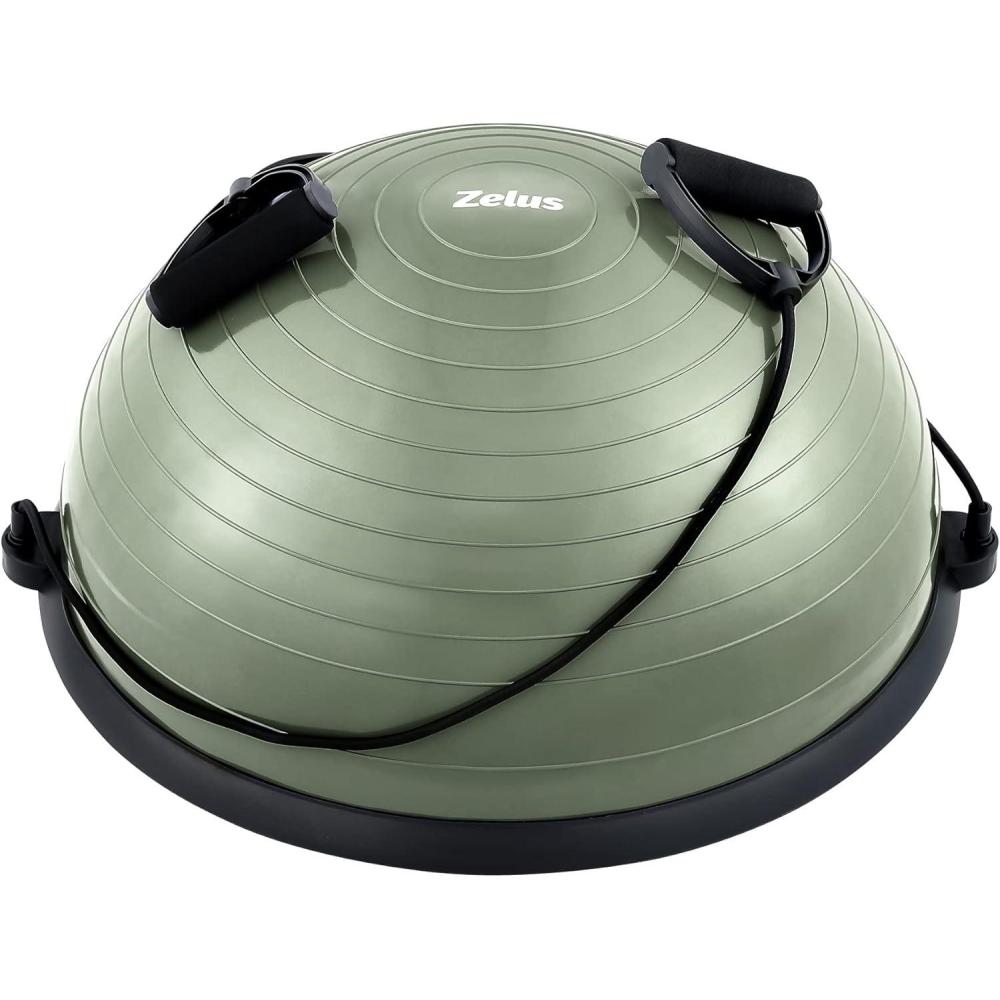 ZELUS Balance Ball Trainer with Resistance Bands and Foot Pump, Inflatable Yoga Ball for Home Gym Workouts, 23 Inch Exercise Half Ball for Balance Training Core Strength Fitness More, 330lb Cap(Matcha green)