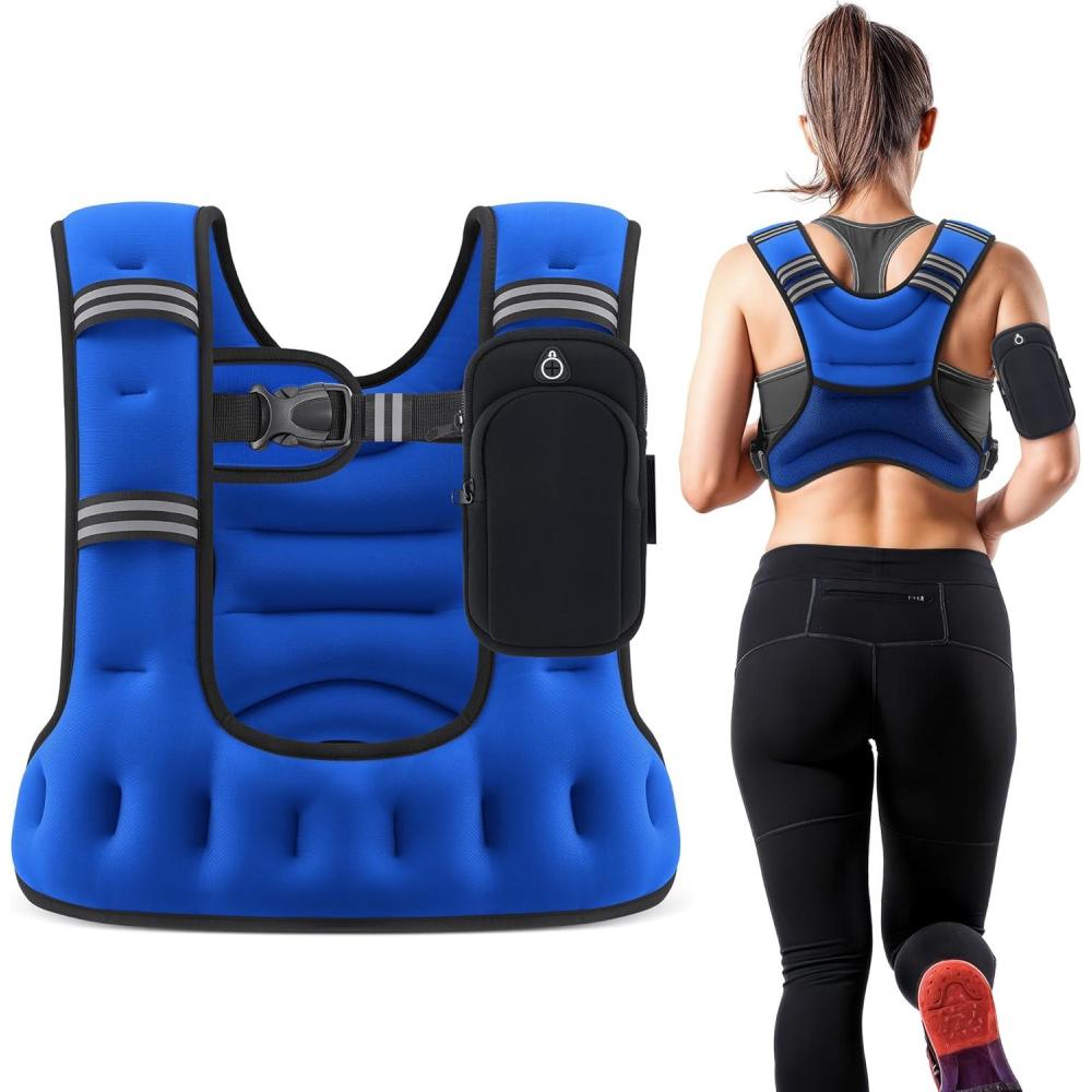 ZELUS Weighted Vest for Women Men, 6/8/12/16/20LB U-Shaped Ergonomic for Even Weight Distribution, Odorless Workout Vest with SGS Certification, Arm Pocket & Back Mesh Pouch for Training & Running(Blue)